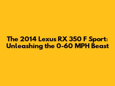 Alright guys, let's talk about a seriously cool ride: the 2014 Lexus RX 350 F Sport. When you're looking at luxury SUVs, you want a blend of comfort, style, and, let's be honest, a bit of get-up-and-go. And the F Sport package on the RX 350? It absolutely delivers on that sporty promise. We're diving deep into what makes this particular model tick, especially when it comes to that crucial 0-60 MPH measurement. Is it just a pretty face, or can this luxurious crossover actually hustle? Let's find out!