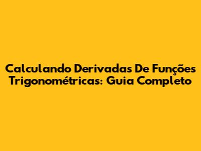 Calculando Derivadas De Funções Trigonométricas: Guia Completo