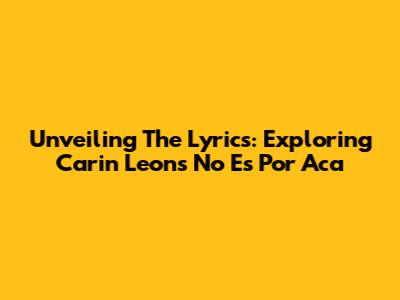 Unveiling The Lyrics: Exploring Carin Leon's 'No Es Por Aca'