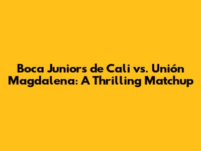Get ready, soccer fans! We're diving deep into an exciting clash between Boca Juniors de Cali and Unión Magdalena. This matchup promises to be a captivating spectacle, filled with thrilling moments, strategic plays, and nail-biting suspense. Whether you're a die-hard supporter of either team or simply a lover of the beautiful game, this analysis will provide you with valuable insights and a comprehensive overview of what to expect. So, buckle up and let's explore the key aspects of this intriguing contest.