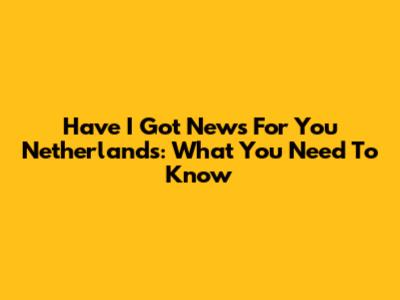 Have I Got News For You Netherlands: What You Need To Know