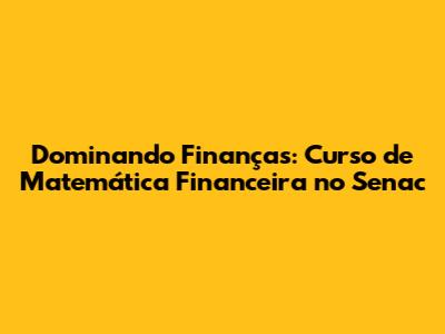 Dominando Finanças: Curso De Matemática Financeira No Senac
