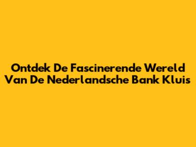 Ontdek De Fascinerende Wereld Van De Nederlandsche Bank Kluis
