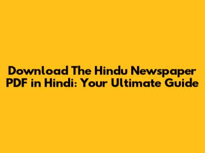 Where to Find The Hindu Newspaper Hindi PDF Daily