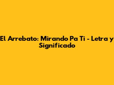 La canción también explora la idea de que esta contemplación no es una debilidad, sino una fortaleza. Es en ese mirar, en esa conexión visual y emocional, donde se encuentra la paz y la comprensión. El Arrebato no cae en la desesperación o en la obsesión; más bien, encuentra en este acto de mirar una fuente de serenidad y alegría. La letra está llena de imágenes que sugieren calma y felicidad: la luz del sol, la brisa, momentos sencillos que se vuelven extraordinarios al ser compartidos o al ser observados en la persona amada. La genialidad de la lírica reside en su simplicidad y autenticidad. No necesita metáforas complejas ni lenguaje rebuscado para transmitir un sentimiento profundo. Es directo, sincero y, por eso mismo, resuena con tanta fuerza en quienes lo escuchan. El significado de "Mirando Pa' Ti" se revela como un amor que se nutre de la simple presencia, de la admiración cotidiana y de la paz que se encuentra al contemplar a quien ilumina tu existencia. Es, en definitiva, una celebración de esos amores que, sin hacer ruido, lo llenan todo.