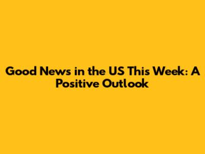 Good News In The US This Week: A Positive Outlook
