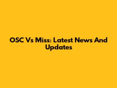 OSC Vs Miss: Latest News And Updates
