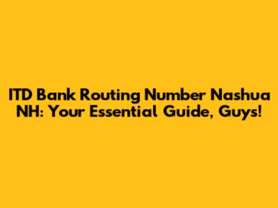 Hey everyone, let's dive deep into something super important for anyone dealing with finances in Nashua, New Hampshire, or using ITD Bank: the ITD Bank Nashua NH routing number. You might be wondering, "Why is this number so crucial?" Well, this little sequence of digits is like the VIP pass for your money, making sure it gets to the right place, whether you're sending a wire transfer, setting up direct deposit, or even processing checks. Without the correct routing number, your financial transactions can hit a snag, leading to delays, confusion, and maybe even some serious headaches. So, whether you're a seasoned pro with your finances or just starting out, understanding and having the right ITD Bank routing number for Nashua, NH, is absolutely key. We're going to break down what a routing number is, why ITD Bank's specific number matters, how to find it, and what to do if you're unsure. Stick around, because by the end of this article, you'll be a routing number expert for ITD Bank in Nashua, NH, guaranteed!