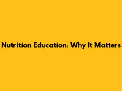 Nutrition Education: Why It Matters