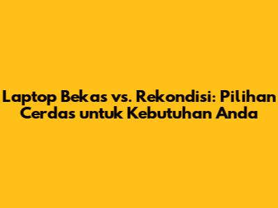 Memilih antara laptop bekas dan laptop rekondisi bisa menjadi tugas yang menantang. Namun, dengan memahami perbedaan utama, kelebihan, dan kekurangan masing-masing opsi, Anda dapat membuat keputusan yang tepat. Ingatlah untuk mempertimbangkan anggaran, kebutuhan, garansi, dan reputasi penjual sebelum membeli. Dengan melakukan riset yang cermat dan berbelanja dengan bijak, Anda dapat menemukan laptop yang sempurna untuk kebutuhan Anda tanpa harus mengeluarkan banyak uang.