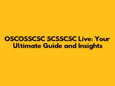 OSCOSSCSC SCSSCSC Live: Your Complete Guide