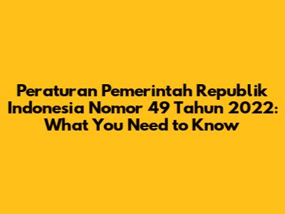 Hey guys! Today, we're diving deep into Peraturan Pemerintah (PP) Republik Indonesia Nomor 49 Tahun 2022. This regulation might sound a bit dry, but trust me, it's super important, especially if you're involved in, or affected by, any government policies or economic activities in Indonesia. We'll break down what it's all about, why it matters, and what you need to know to stay informed.