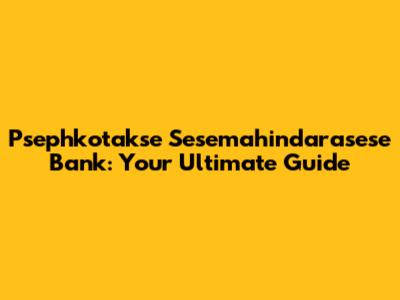 Psephkotakse Sesemahindarasese Bank: A Comprehensive Guide