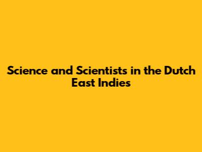 Science And Scientists In The Dutch East Indies