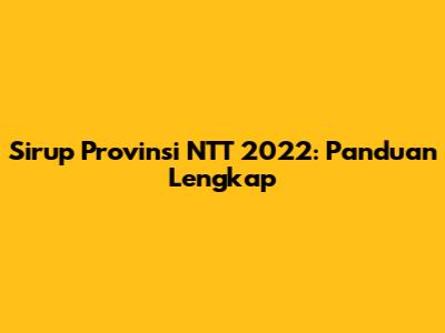 Sirup Provinsi NTT 2022: Panduan Lengkap
