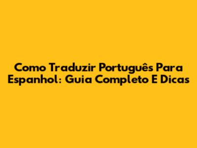 Como Traduzir Português Para Espanhol: Guia Completo E Dicas