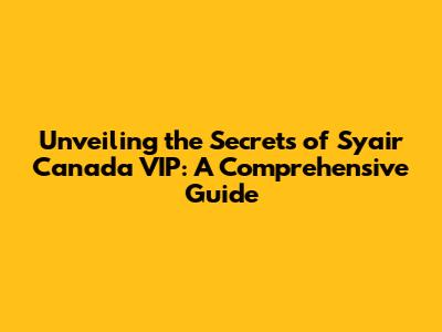 Hey guys! Ever heard whispers about Syair Canada VIP? If you're into the world of lotteries and predictions, you've probably stumbled upon this term. But what exactly is it? And more importantly, how can you navigate this intriguing space? Fear not, because we're diving deep into the world of Syair Canada VIP, unraveling its mysteries, and equipping you with the knowledge to make informed decisions. Get ready for a thrilling ride, filled with insights, tips, and a whole lot of fun! This guide is designed to be your one-stop resource for everything related to Syair Canada VIP, breaking down complex concepts into easy-to-understand pieces. We'll explore its origins, its purpose, the benefits it offers, and how you can potentially use it to your advantage. Whether you're a seasoned lottery enthusiast or a curious newbie, this guide has something for everyone. So, buckle up, and let's embark on this exciting journey together!