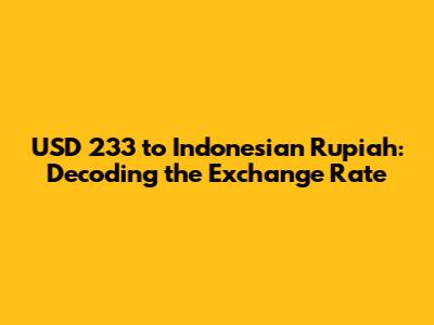 Hey guys! Ever wondered how much your hard-earned USD translates to in Indonesian Rupiah? Well, you're in the right place! We're diving deep into the USD 233 to Indonesian Rupiah conversion. Understanding currency exchange rates can feel like navigating a maze, but trust me, it doesn't have to be complicated. We'll break down everything you need to know, from the current exchange rate to factors that influence it. So, grab a coffee, and let's get started!