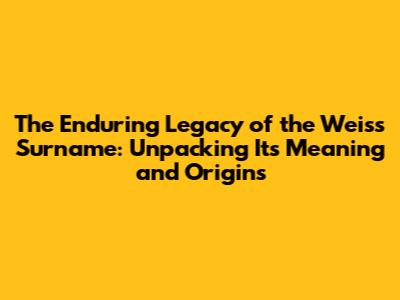The Enduring Legacy of the Weiss Surname: Unpacking Its Meaning and Origins
