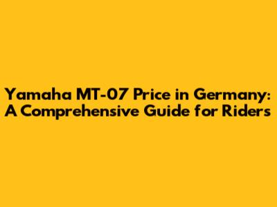 Yamaha MT-07 Price In Germany: A Complete Guide